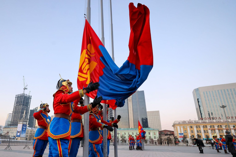 Төрийн тугийг цэнгүүлэхэд Зэвсэгт хүчний 032 дугаар ангийн бүрэлдэхүүн, төрийн тусгай хамгаалалтын алба хаагчид оролцож, үлээвэр найрал хөгжимд хүндэтгэлийн ая эгшиглэлээ.