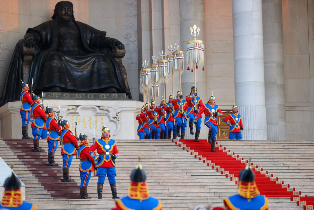 Эзэн Богд Чингис хааны мэндэлсний 863 жилийн ой, “Монгол бахархлын өдөр”-ийг тохиолдуулан жанжин Д.Сүхбаатарын талбайд Төрийн далбааг мандуулж, Төрийн есөн хөлт Их цагаан тугийг нар зөв гороолон цэнгүүллээ.