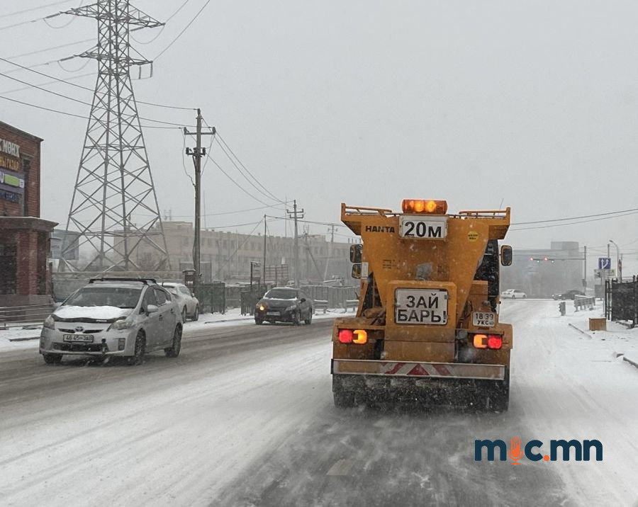 Нийслэл хотод орсон цастай холбогдуулан авто болон явган замд халтиргаа гулгаа үүсэхээс сэргийлж давс, бодис цацаж байна.