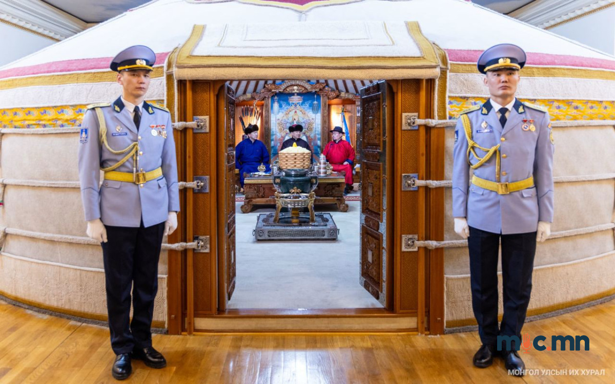 "Сүрээр дарагч" хэмээх гал улаан морин жилийн хаврын тэргүүн сарын шинийн нэгний өглөө (2026.02.18) Монгол төрийн золголт Төрийн ёслол хүндэтгэлийн өргөөнд 08.30 цагт ёслол төгөлдөр боллоо.