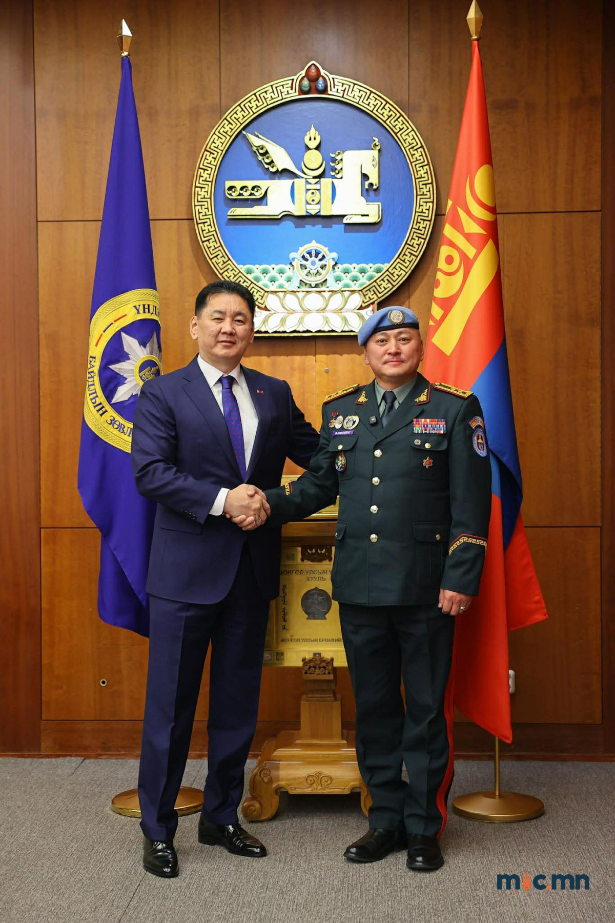 Монгол Улсын Ерөнхийлөгч, Зэвсэгт хүчний Ерөнхий командлагч Ухнаагийн Хүрэлсүх Бүгд Найрамдах Кипр Улс дахь НҮБ-ын энхийг сахиулах ажиллагааны Цэргийн хүчний командлагчаар ажилласан хошууч генерал Б.Эрдэнэбатыг хүлээн авч уулзлаа.