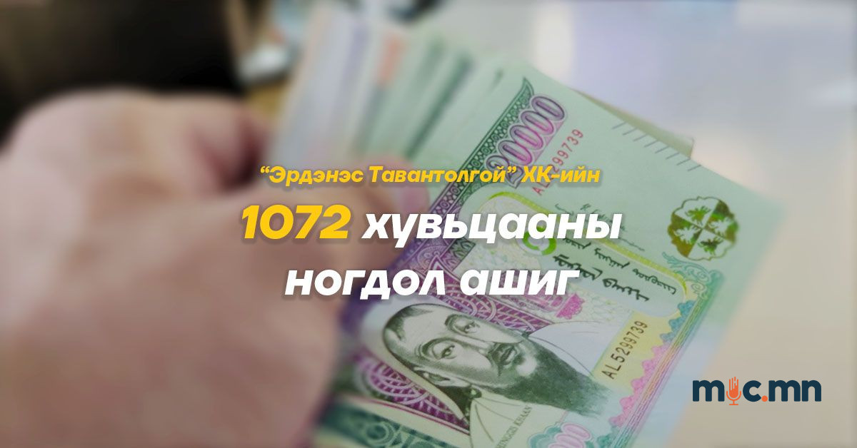 “Эрдэнэс Тавантолгой” хувьцаат компани 2025 онд 1.1 их наяд төгрөгийн цэвэр ашигтай ажилласаж, үүнээс нэгж хувьцаанд 65.55 төгрөгөөр тооцон нийт 786.6 тэрбум төгрөгийг ногдол ашигт хуваарилахаар болсон байна. Үүнээс Монгол Улсын 3.5 сая иргэн хувьцаа эзэмшигчдэд нийт 208.5 тэрбум төгрөгийн ногдол ашиг ногдохоор тооцжээ.